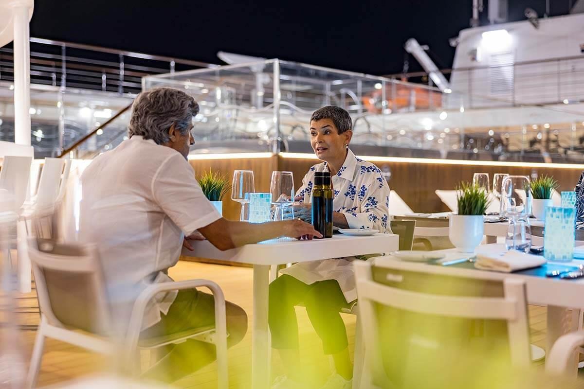 Open bars and lounges, including 24-hour bar service with specialty appetizers, are always included. Get to know your fellow explorers with champagne and gourmet canapés during a meet and greet. Enjoy a leisurely evening swapping stories or looking out on the horizon from spacious decks. An ambiance of relaxed luxury invites you to savor each moment of the journey, allowing for deeper connections as you mingle with new friends.